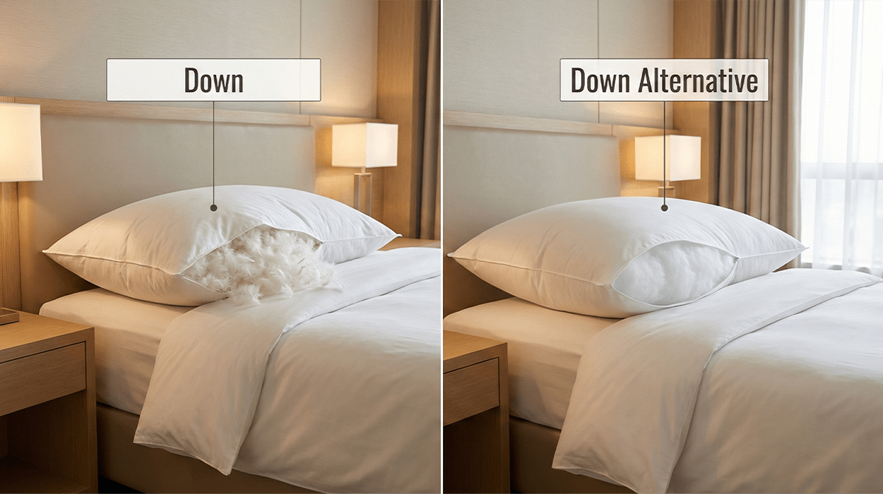 Flat and lumpy pillows can be really damaging to your business. That’s why hoteliers must understand the “Down Vs Down Alternative Pillow” debate and choose the best according to their property.